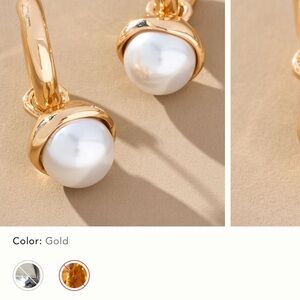 Chic gold hoops with dangling pearl accents. Adds elegance to any outfit.