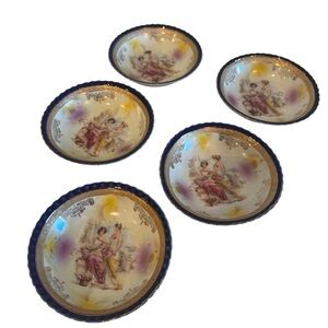 Germany Porcelain Pair Of 5 Blue And Gold Gilt Plates Grecian Small 5" in Size