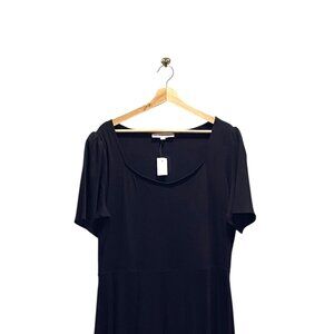 Loft Short Puff Sleeve Midi Dress Black Size XL NWT Minimalist Fall Party Career