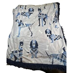Dapper Dogs Throw Blanket Gray Blue Faux Fur Basset Great Dane Doberman More New
