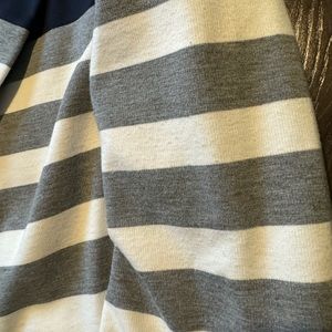 The Academy Blazer by Gap featuring gray/white stripes and navy blue. Collar has attached cute gold anchor/boat lapel pin, can be removed. Lined inside and shoulder pads for a professional fit. Staple, cute piece for any closet. Dress up or down! Size 10. Great condition with a little bit of piling, see last pic. This blazer is so preppy and chic!