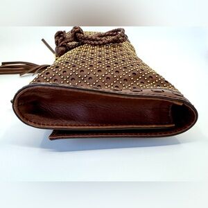 Authentic Gucci Malika Clutch in brown leather with gold studs. This bag is absolutely gorgeous, and I receive compliments every single time I carry it. Bag has very light wear (see photos) and has been very well cared for over the years by me.