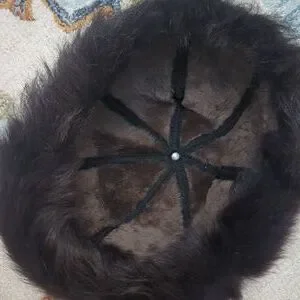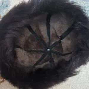 This is a gorgeous sheepskin leather and fur round Cossack style hat. This style is very in this winter. Beautiful brown lamb and sheepskin leather and greyish-brown fur. lined in shearling. Still has tags on it.