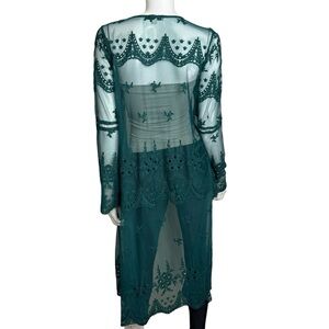 Haute Mode Mesh Embroidered Lace Long Sleeve Teal Cardigan