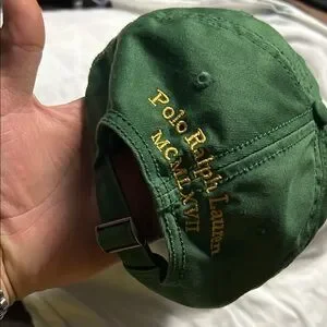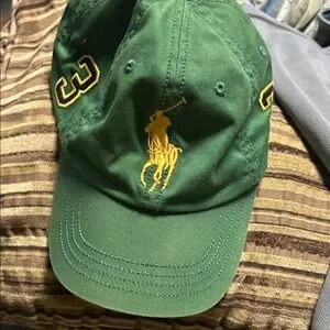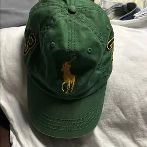 Stylish green cap by Polo Ralph Lauren. Features bold yellow embroidery. Perfect for casual wear.