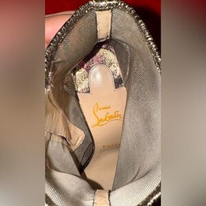 ✨ Authentic Christian Louboutin ankle boots featuring a black and multicolor glitter jacquard fabric with metallic detailing.