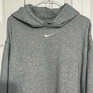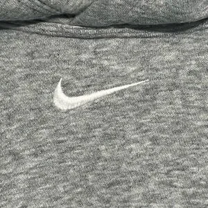 Soft gray Nike hoodie with a classic design. Features a comfortable fit and iconic logo.