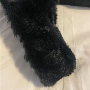 Cozy black faux fur slippers. Perfect for lounging in.