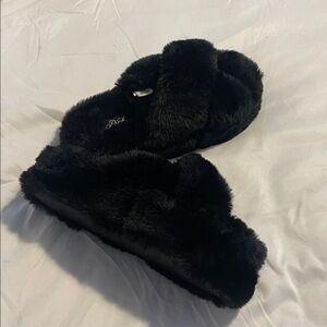 Black Faux Fur Slippers - Pink by Victoria secret BRAND NEW NEVER WORN