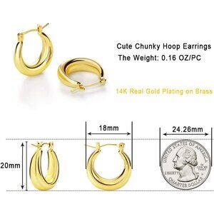 * 【Hoop earrings for women】Chunky hoop earrings gold are not heavy which is easy and comfort to wear or take off, sturdy and solid clasp. These minimalist thick hoop earrings will be easy to match with most of your outfits.