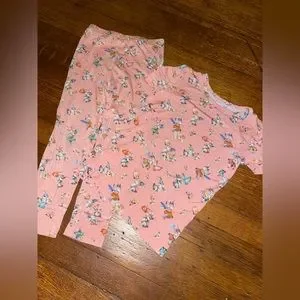 This can be worn as pjs, but the shirt could also be worn with jeans. Super soft and stretchy!