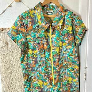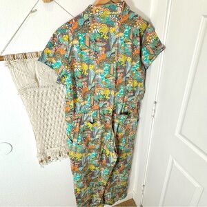 70s 60s Magnificent Mushroom Snail Flower Power Retro Hippie Teal Jumpsuit XL