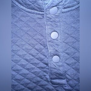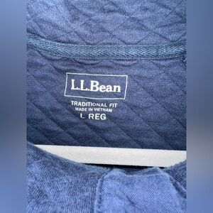 Stay cozy in this L.L. Bean quilted pullover sweatshirt, size Large (Regular Fit). This classic navy blue top features a diamond quilted pattern, a snap-button placket, and a stand-up collar for added warmth. The soft, midweight fabric makes it perfect for layering on chilly days. Great for casual wear, outdoor adventures, or lounging. Gently used and in excellent condition.