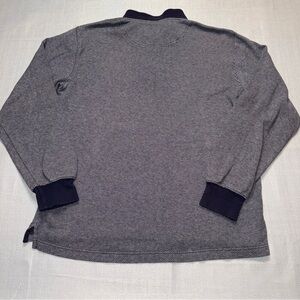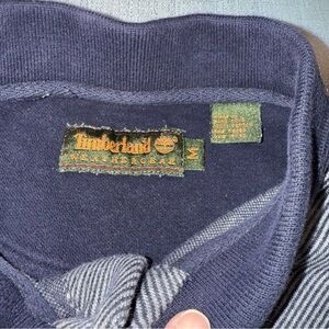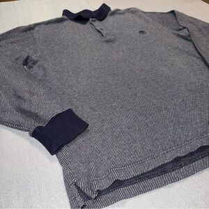 This is a vintage Timberland long sleeve polo shirt in a men’s size medium. It has navy and grey tones throughout. This is an excellent condition.