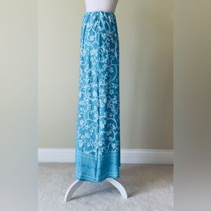 Vince Camuto Blue & White Floral Print Elastic Waist Unlined Pull-on Maxi Skirt