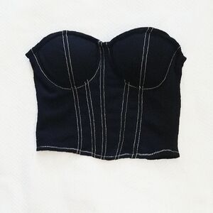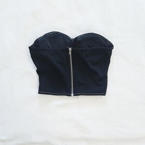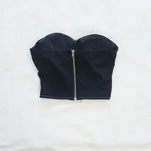 Daek blue almost black strapless crop top corset with contrast stitching. Has a zipper back.