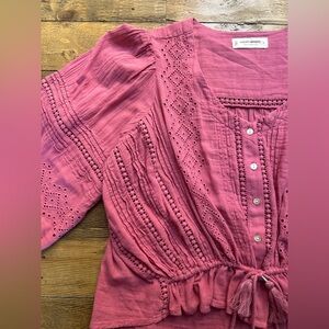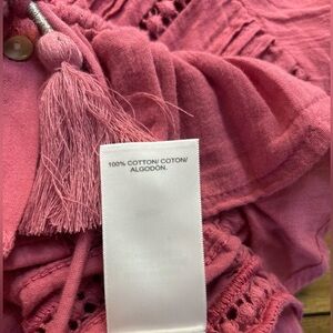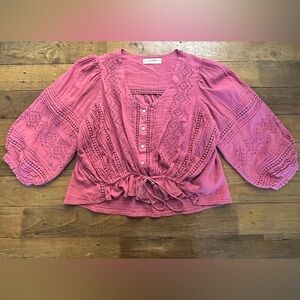 LUCKY BRAND Raspberry Pink Puff Sleeve Blouse with Tassel Tie in the Front Boho
