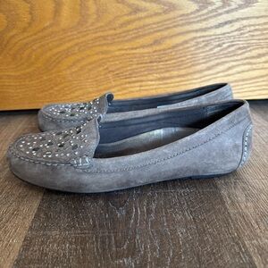 Step out in style with these elegant gray studded loafers. Perfect for any occasion, these shoes offer both comfort and sophistication.