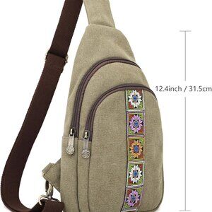 Canvas Sling Bag for Women Small Crossbody Purse Travel Hiking Chest Bag