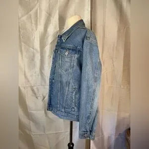 Old Navy Blue Jean Jacket with Colorful Embroidery