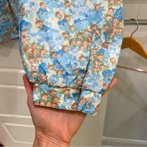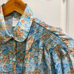 Vintage Smocked Shoulder Puff Sleeve Blue Floral Top