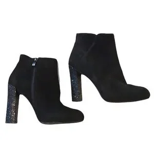 Michael Shannon Tosca Blu Shoes Black Glitter Block Heel Bootie