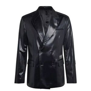 TAILORED DOUBLE-BREASTED JACKET IN HIGH-SHINE CHILE 62 FABRIC.