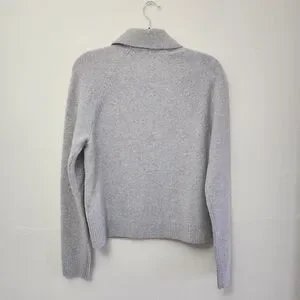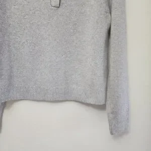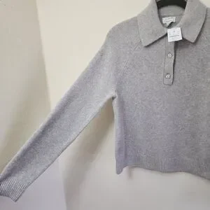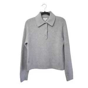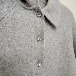 tags: neutral, contemporary, minimalist, modern, fall, winter, christmas sweater, girly, feminine, minimalist chic, classic preppy style, cozy cashmere blend, neutral gray knit, polished collared sweater, elevated casual wear, timeless wardrobe staple, soft luxe texture, refined everyday knitwear, quiet luxury, effortless sophistication, versatile layering piece, autumn winter essential, upscale loungewear vibe, clean tailored look, Parisian minimalist, relaxed yet polished, neutral capsule wardrobe, classic button placket detail, understated elegance, soft romantic