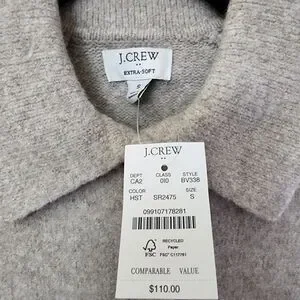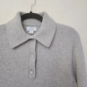 J Crew Wool Collared Polo Sweater Extra Soft Rhinestone Buttons Cropped Size S