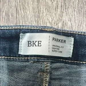 BKE Parker Universal Fit, High Rise, Super Flare, size 29, wear between legs see pictures, distressed jeans