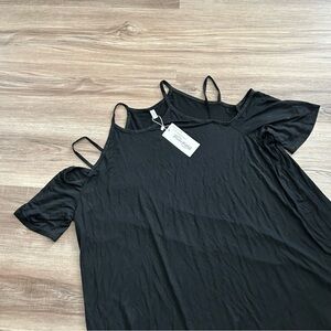 Meanero Black Cold Shoulder caged Shoulder Tunic Top Women Size XXXL NWT / stretchy/ light weight/ Soft and Comfy