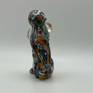 This wonderful Murano Glass dog is so colorful and fascinating, you could look at it forever. It was created using the Millefiori technique, which involves creating glass canes or rods, known as murine.