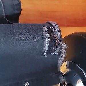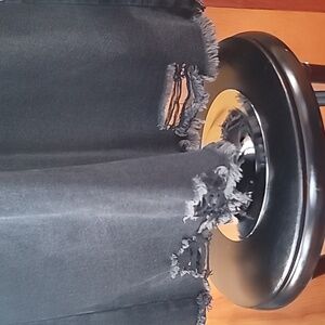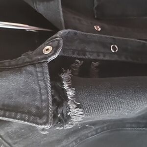 Pre owned, worn and washed once, black destressed jean shacket with snaps.