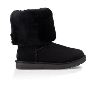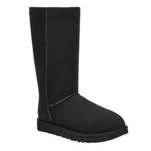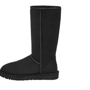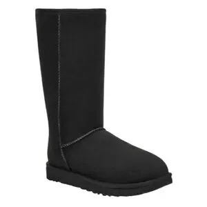 Elegant black suede boots with a plush fold-over cuff. Perfect for warmth and style. The Women's UGG Classic Tall Il is a reimagined version of the iconic UGG boot, delivering timeless style with enhanced comfort and durability. Originally designed for surfers seeking warmth after early-morning sessions, this beloved silhouette has evolved into a fashion staple. Crafted with 17mm Twinface sheepskin, these boots provide ultimate softness and warmth, while the Treadlite by UGG™ outsole ensures lightweight cushioning and superior traction. NEW wo box