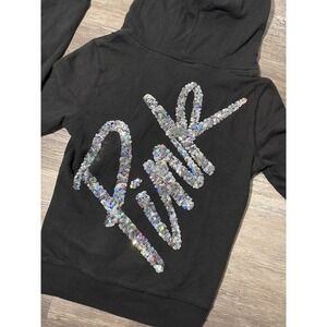 Y2K PINK Victoria's Secret Full Zip Hoodie Black Sequin Logo Womens