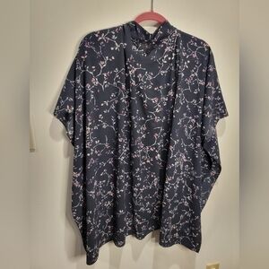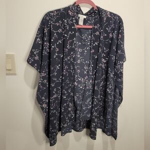 j jill beachy navy with pink floral print open front kimono. pre owned no rips or stains
