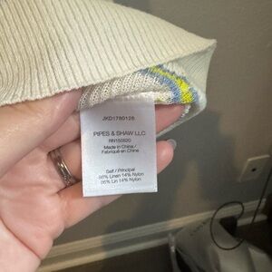 Stylish sweater with yellow and blue stripes. Semi-sheer material. New with tags. Size XL