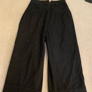 Chic black pants by Free People. Perfect for casual wear. New Free People Sweet Talk Black Wide Leg Chino Pants Cotton & Linen Sz 8 Medium. These pants are brand new without the tags in. They have an oversized wide leg shape. The back of the pants is really cute and they are high rise. I have measurements and material tags in the photos. I am smoke and pet free. I am open to offers.