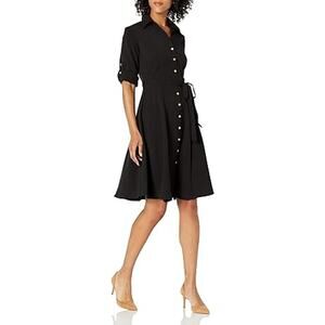 SHARAGANO Women's Button Front Pleated Shirt Casual Dress Size 18W In Very Black