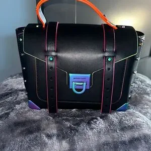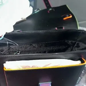 Stylish black satchel with vibrant multicolor details. Features bold design and premium craftsmanship. Perfect for any occasion.