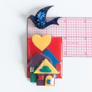 TAGS: Designs by Lucinda house pin, Lucinda house pin, Designs by Lucinda lapel pin, Lucinda House brooch, giftable enamel brooch set, vintage enamel lapel pins, quirky enamel jewelry set, artistic brooch duo, collectible enamel bird pin, house and bird enamel pins, wearable art enamel brooch, bold enamel jewelry duo, handmade enamel house pin, Lucinda enamel house collectors, art pin enamel jewelry, bird brooch with enamel detail, playful enamel brooch pair, whimsical house pin with heart, retro enamel jewelry brooch set, statement enamel pin pair, bird lapel pin enamel, vintage lucinda enamel brooch, brooch set enamel bird house, holiday gift enamel brooch, art jewelry enamel duo, color pop enamel brooch set, bird brooch collectible, house brooch colorful enamel, everyday wearable art pin, special occasion brooch duo, gallery-inspired enamel jewelry