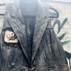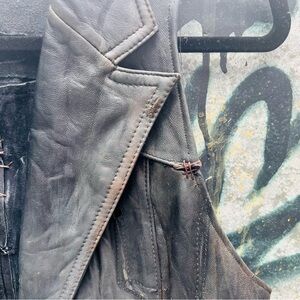 I make hats, but I also dabble in fashion, and working with leather is a passion. This was a vintage leather jacket. It’s been ripped, distressed, and embellished, so it borders on post apocalyptic cosplay, but it’s meant to be worn with jeans as everyday wear as well.