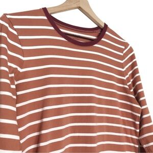 MADEWELL Northside Vitnage Etta Stripe Long Sleeve Tee Shirt. Crew neckline. Long sleeves. Contrast collar detail. Rust Orange and white colorway. 100% Cotton. Machine wash.