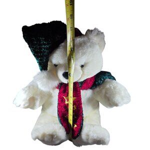 White 2001 Holiday Teddy Bear With Green Red Hat Scarf Stuffed Plush Toy kmart