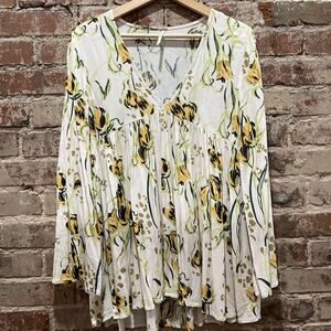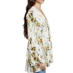 Free People Boho Bella Floral Print Bell Sleeve Tunic Top Size XS