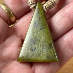 Pendant: triangular tab, polished; layered stones as shown