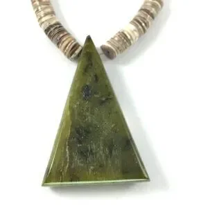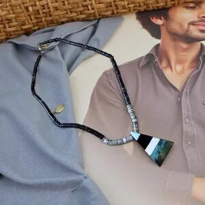 Kewa / Santo Domingo-Style Shell Heishi Necklace, Inlay Tab Pendant, 16″