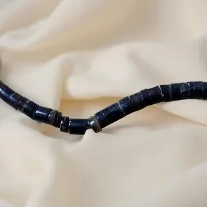 Condition: light surface wear (see back photo); heishi tight and even; clasp functions. No cracks or repairs observed.