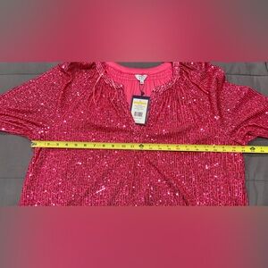 Eye-catching pink sequin blouse by Crown & Ivy. Ideal for special occasions. Never worn. Has 3/4 length sleeves.