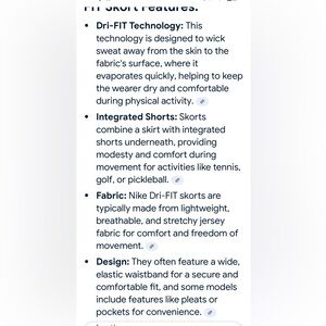 Fabric: Nike Dri-Fit skorts are made from lightweight, breathable and stretchy jersey fabric for comfort and freedom of movement.